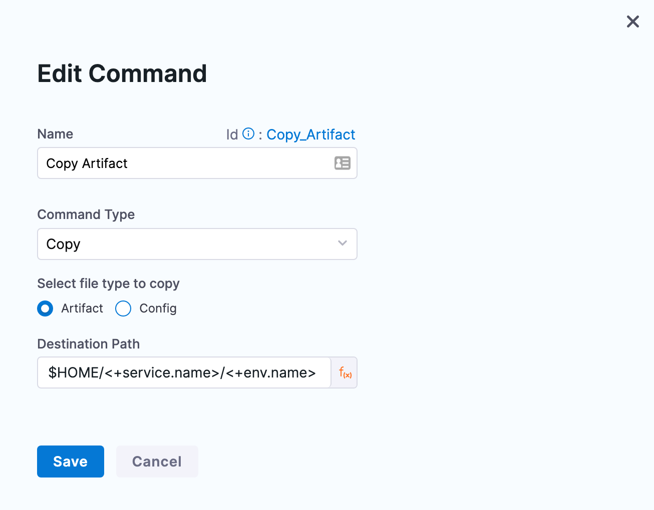 Using the Copy command type, you can copy the deployment artifact onto the target hosts of the deployment.